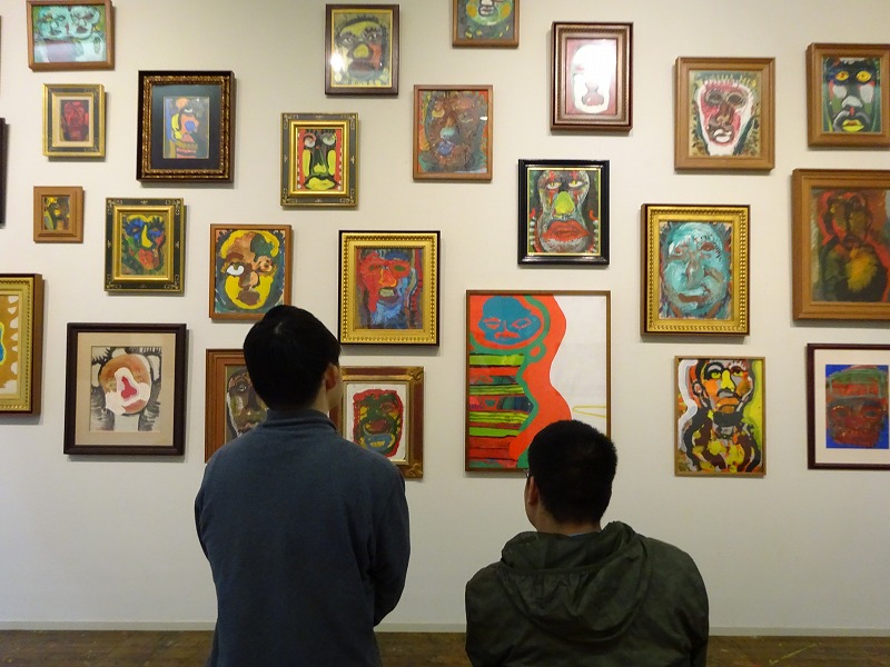 館内は中村正義の顔シリーズで溢れかえるように壁面いっぱいに作品が飾られていました。どれも生きている 息づいている 生命の画家 魂の画家 中村正義の鼓動が響き伝わるような感覚に陥る私たち。はるさんも健太さんもアトリエにいる時とはまるで違う感じで 静寂に包まれ無言で作品に吸い寄せられるように鑑賞する。