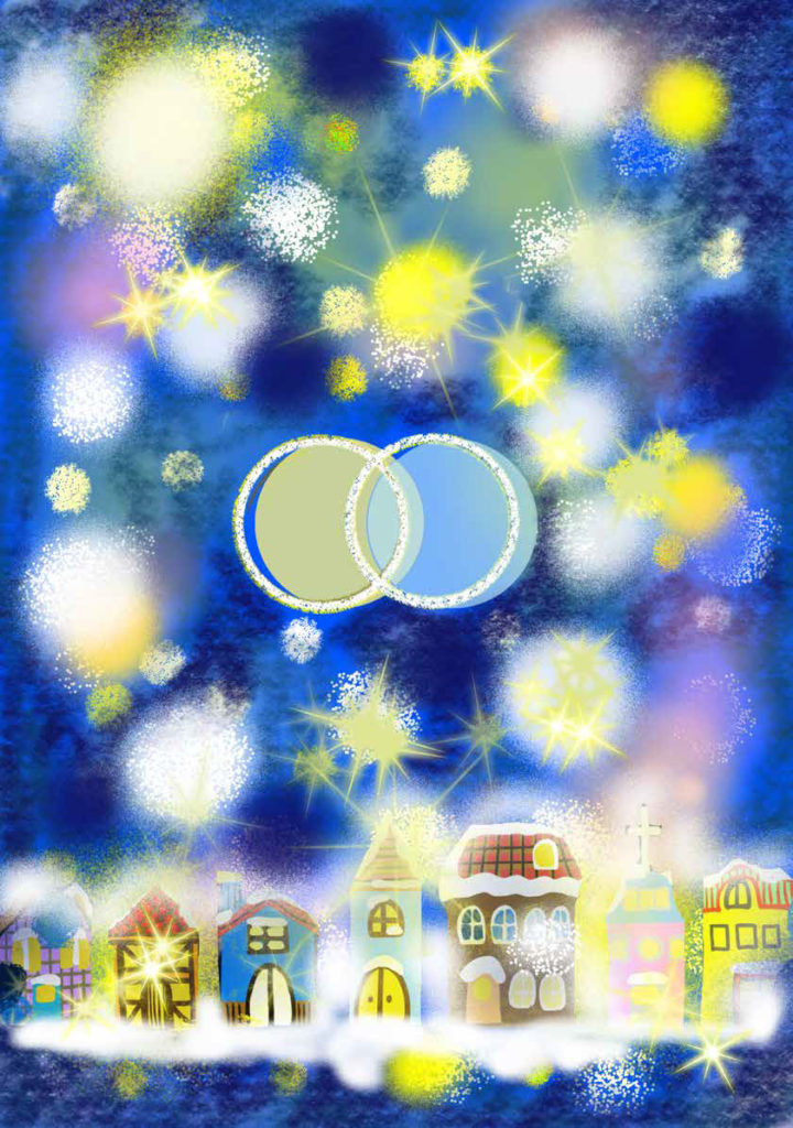 ART STUDIO GENの登録作家Yumiさんがデザイン担当した書籍「双子の月」が無事に発行・販売されました。GENと出版社の共同企画で今回はGENの登録作家3名が書籍の表・裏表紙・挿絵をデザイン担当しました。GEN初の夢の書籍化が実現しました。今回は「双子の月」のデザインを担当したYumiさんのデザイン画(表・裏・挿絵)を紹介します。物語の原稿とイラストデザインの指示書を読んで イメージに近づけて描く仕事は本当に大変でした。デザイン画の途中審査を通過しながら最終提出してもリテイク(やり直し)があったり くじけそうになりながらも最後までやり遂げたYumiさんの仕事に敬服します。本当にお疲れさまでした。今回のYumiさんのデザイン画はデジタル画で 独創的なオリジナリティとクオリティを秘めたテイストとなりました。物語にもマッチングするデザイン性に出版社も納得。大役を果たしての書籍化・販売となりました。今回は日本語・英語・フランス語の3か国語シリーズでの販売で アマゾンを通して世界で販売されることになりました。反響が楽しみです。表・裏表紙・挿絵(一部)を紹介します。
